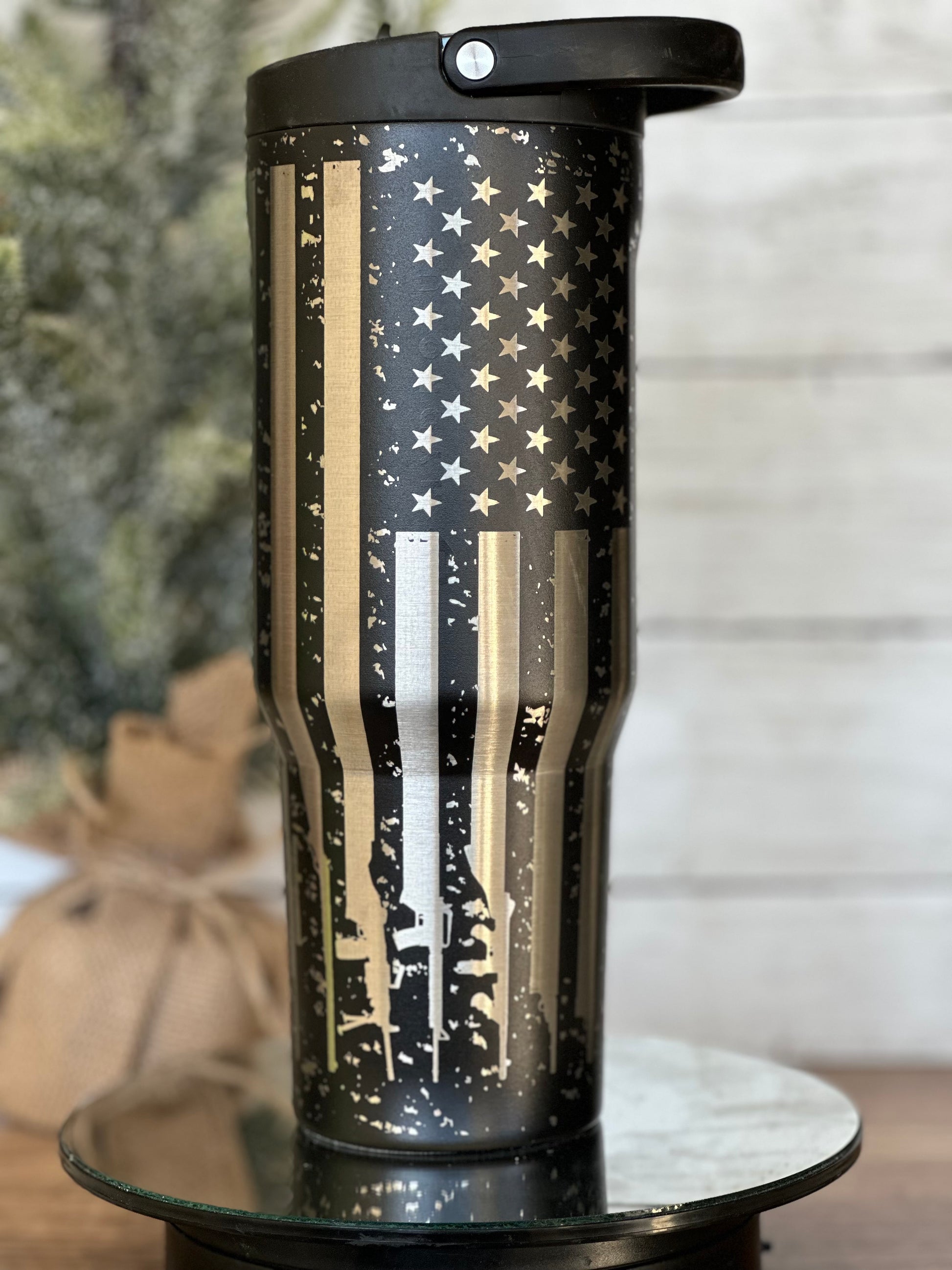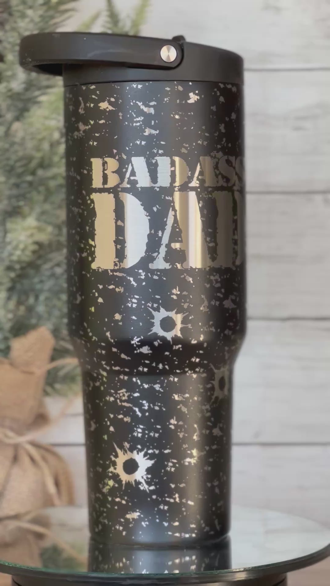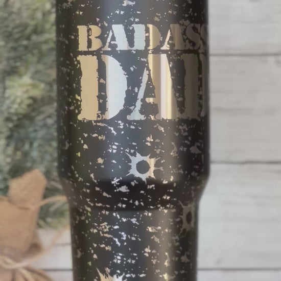For the dad who does it all and looks cool doing it—this rugged tumbler is the ultimate gift. With a distressed black-and-metallic finish, bullet hole accents, bold “Badass Dad” lettering, and a patriotic American flag design on the back, this cup is built for tough guys who deserve to enjoy their drinks ice-cold or steaming hot.
