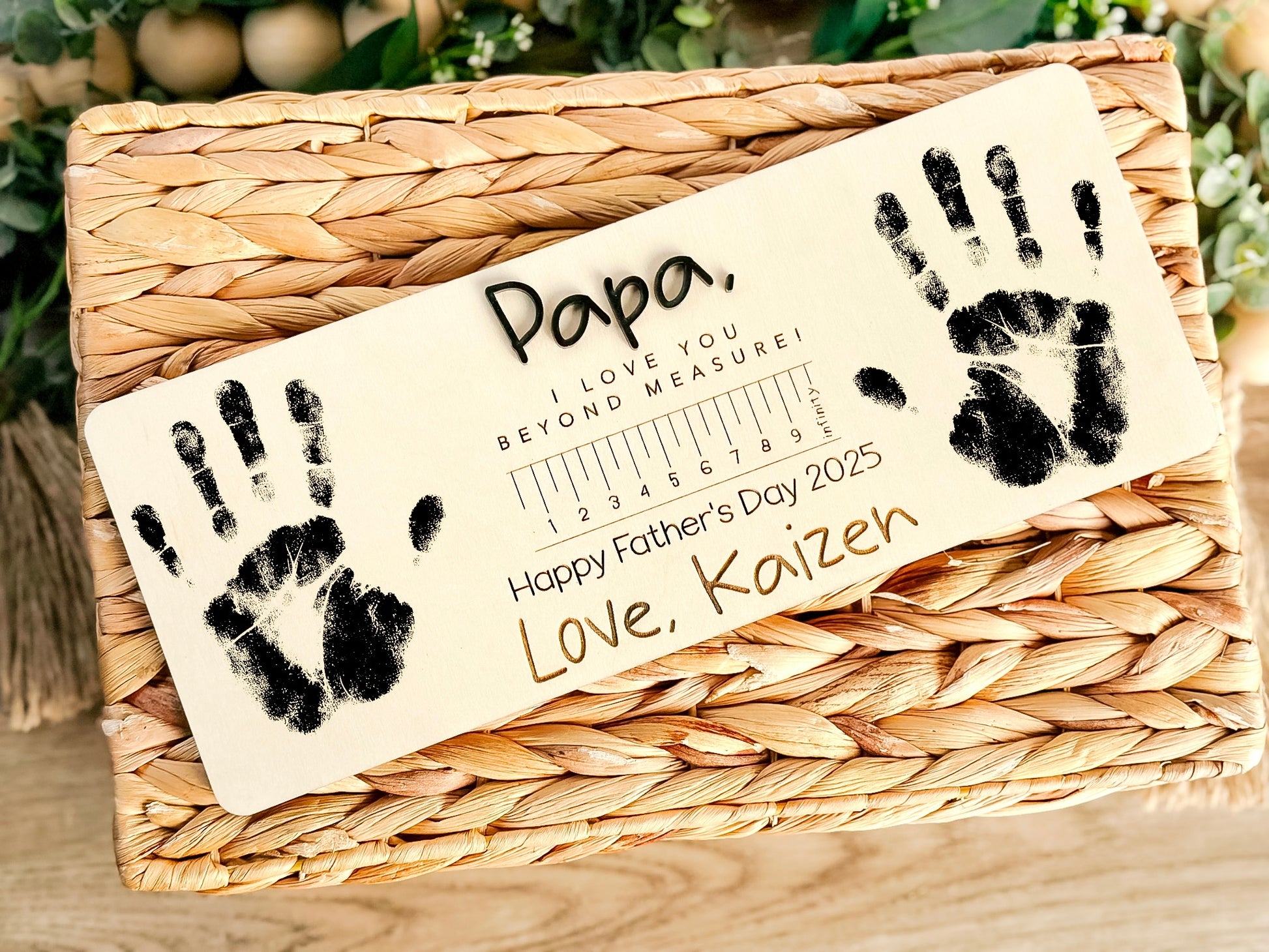 This is made with 1/4” Baltic Birch and 1/8” acrylic and will come blank! You are supposed to put your own kids’ handprints on these boards