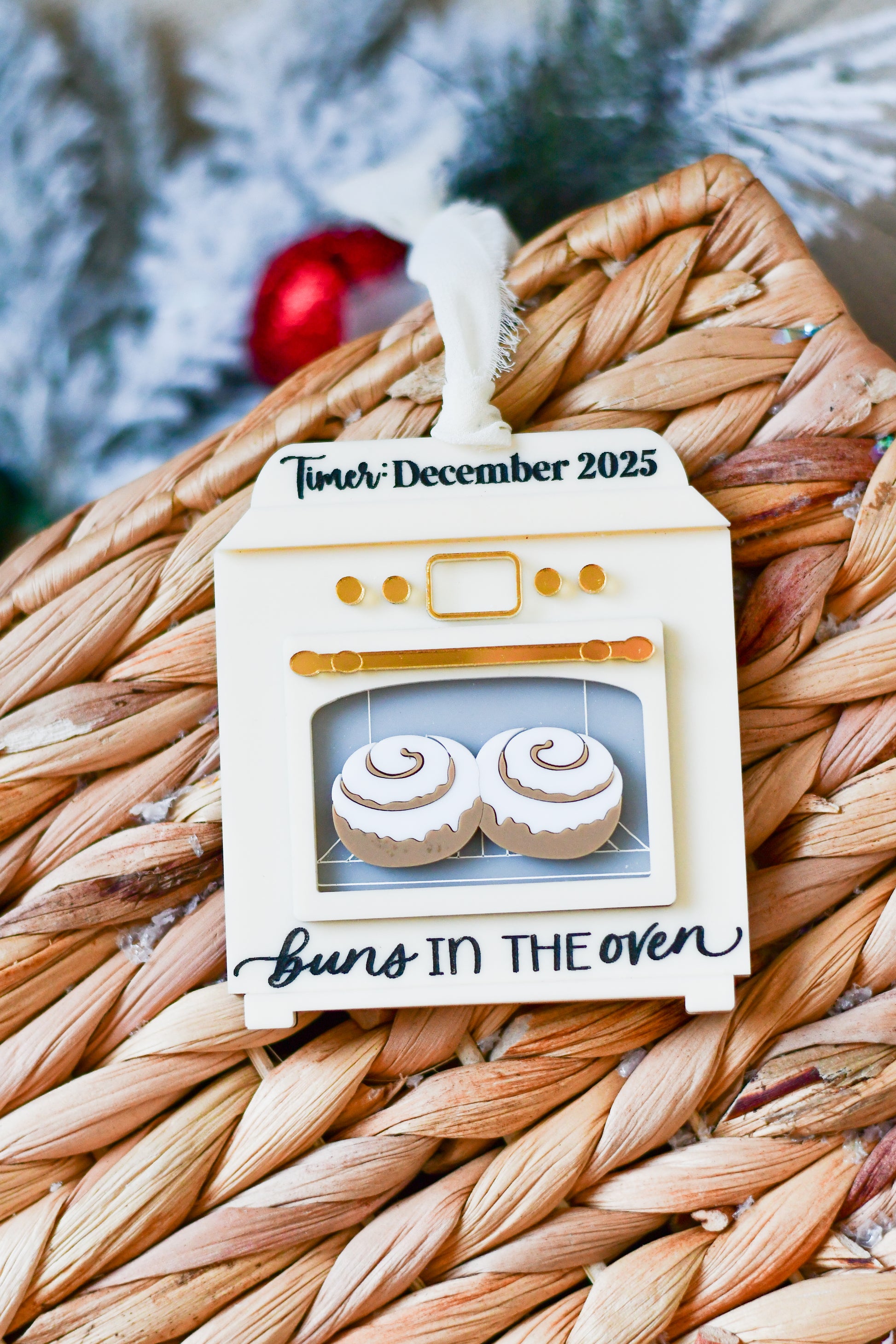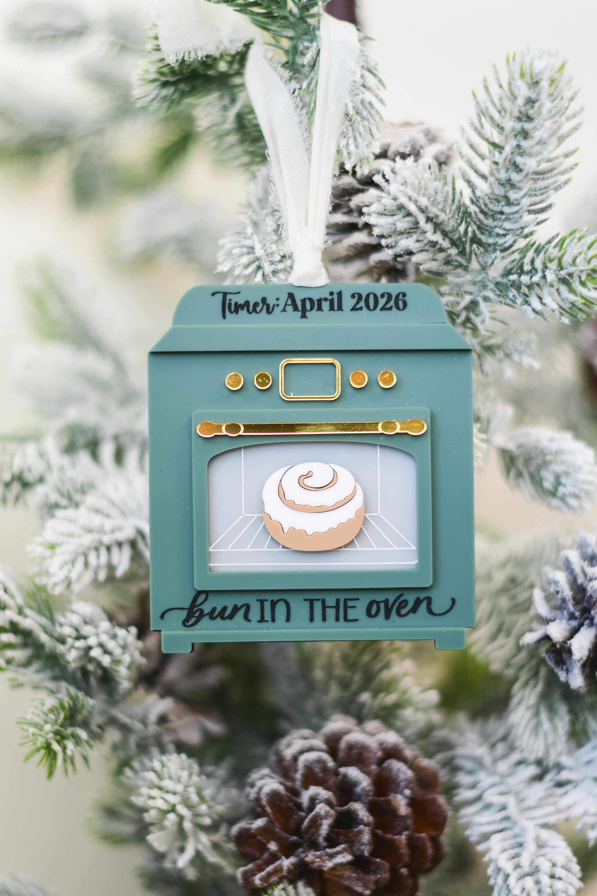 Celebrate the sweetest news in the cutest way! Our āBun in the Ovenā Christmas ornament is the perfect keepsake for expecting parents, a unique way to announce a pregnancy, or a memorable gift for grandparents-to-be. Designed to look like a tiny oven with a cinnamon bun (or buns!), this charming ornament is customized with your due date and makes the perfect addition to your holiday tree.