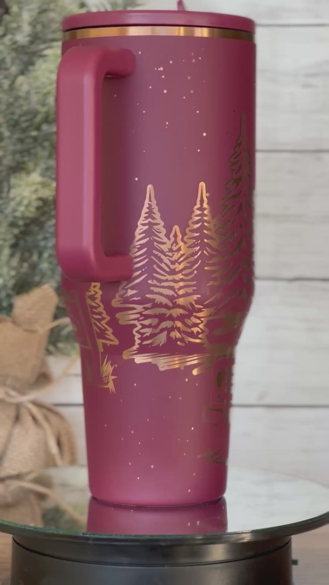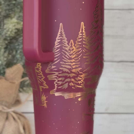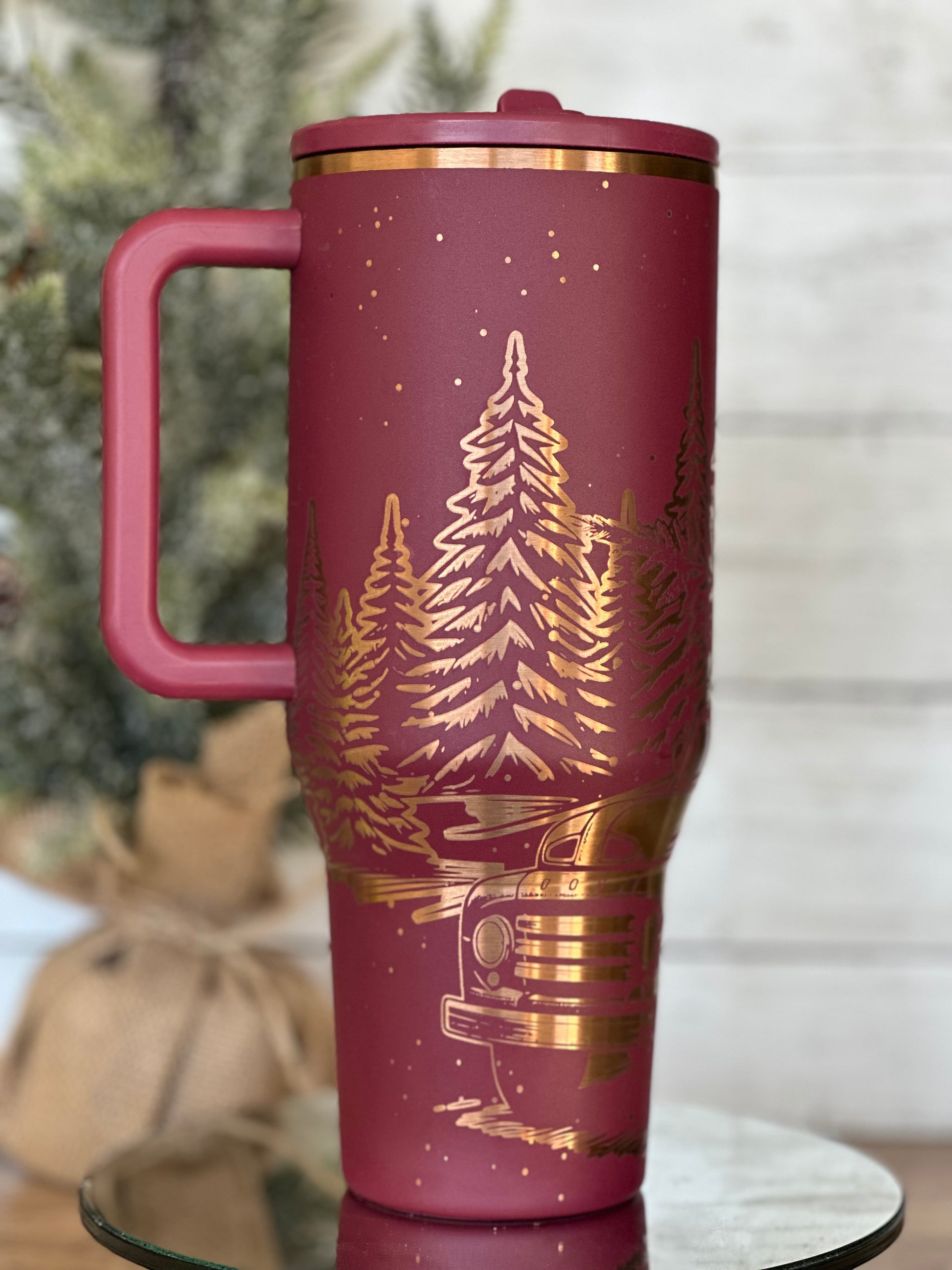 - Festive Design: Matte burgundy finish with gold-etched Christmas trees, starry night accents, and a rustic truck design ā perfect for holiday vibes.