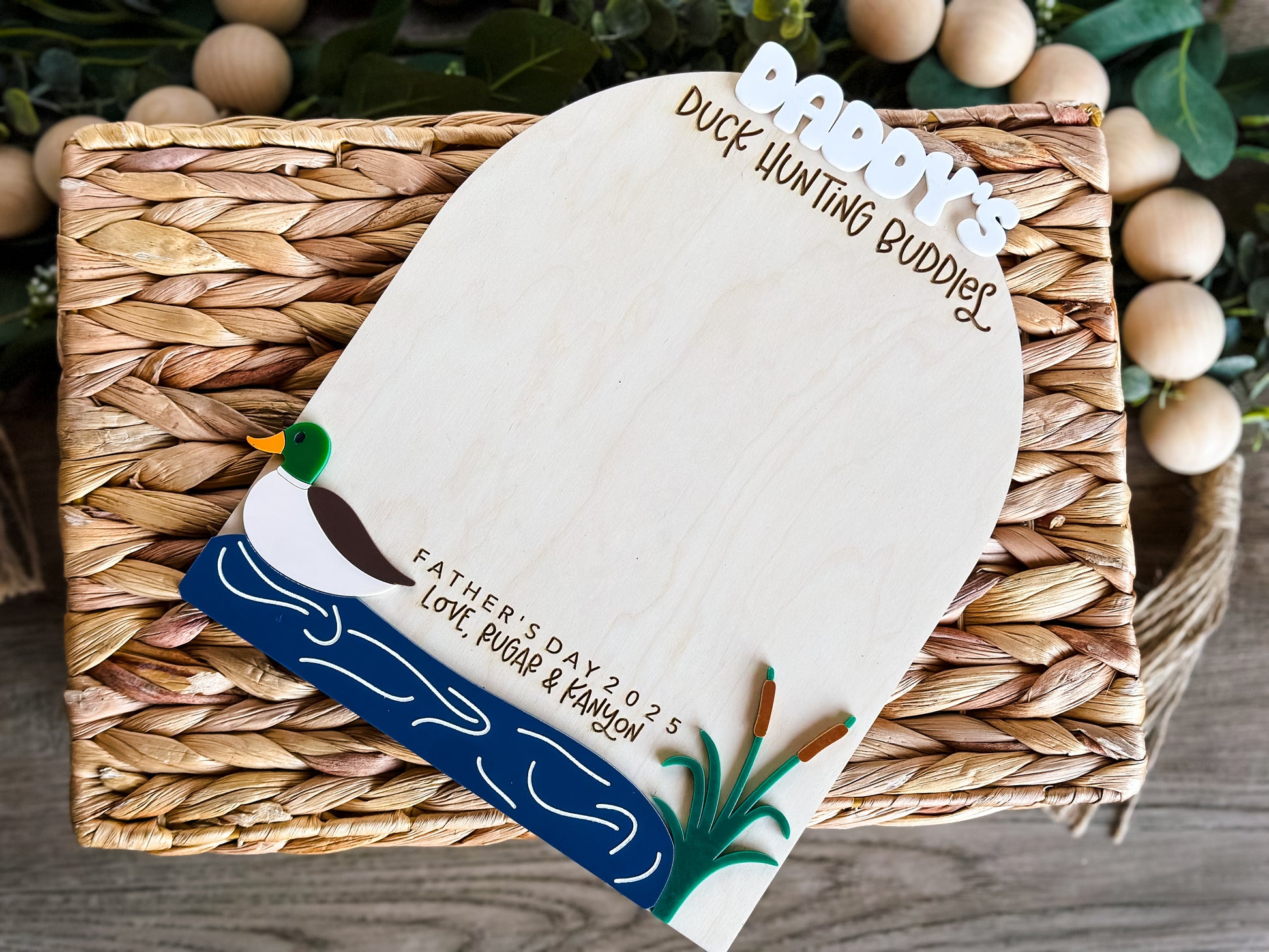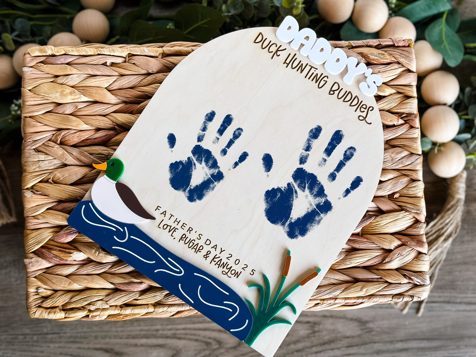 This is made with 1/4” Baltic Birch and 1/8” acrylic and will come blank! You are supposed to put your own kids’ handprints on these boards!