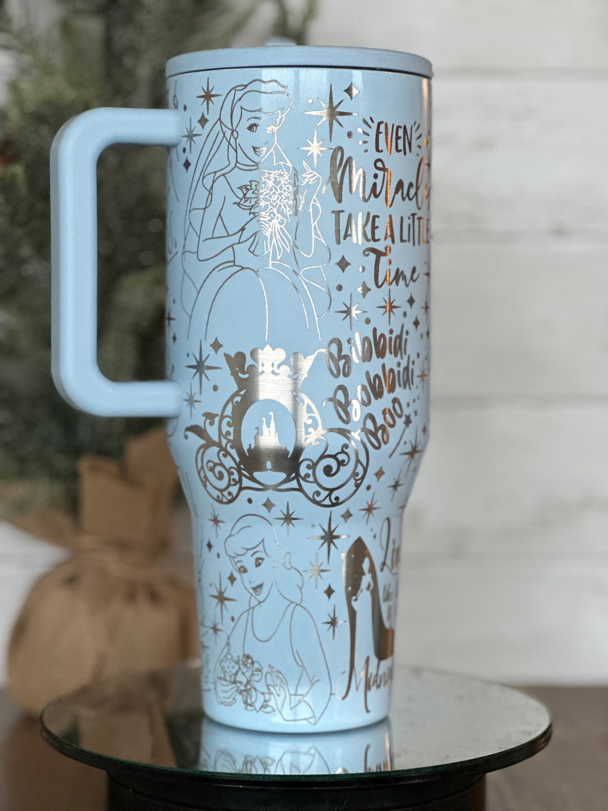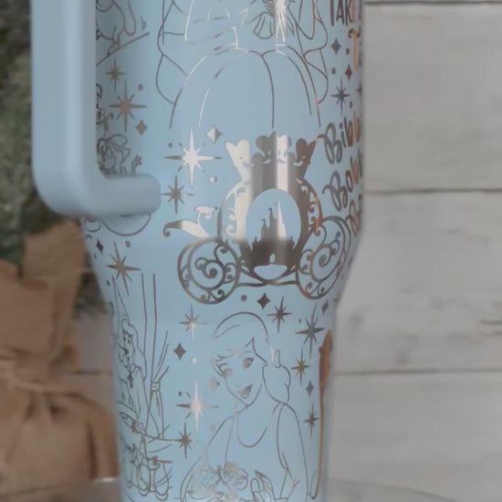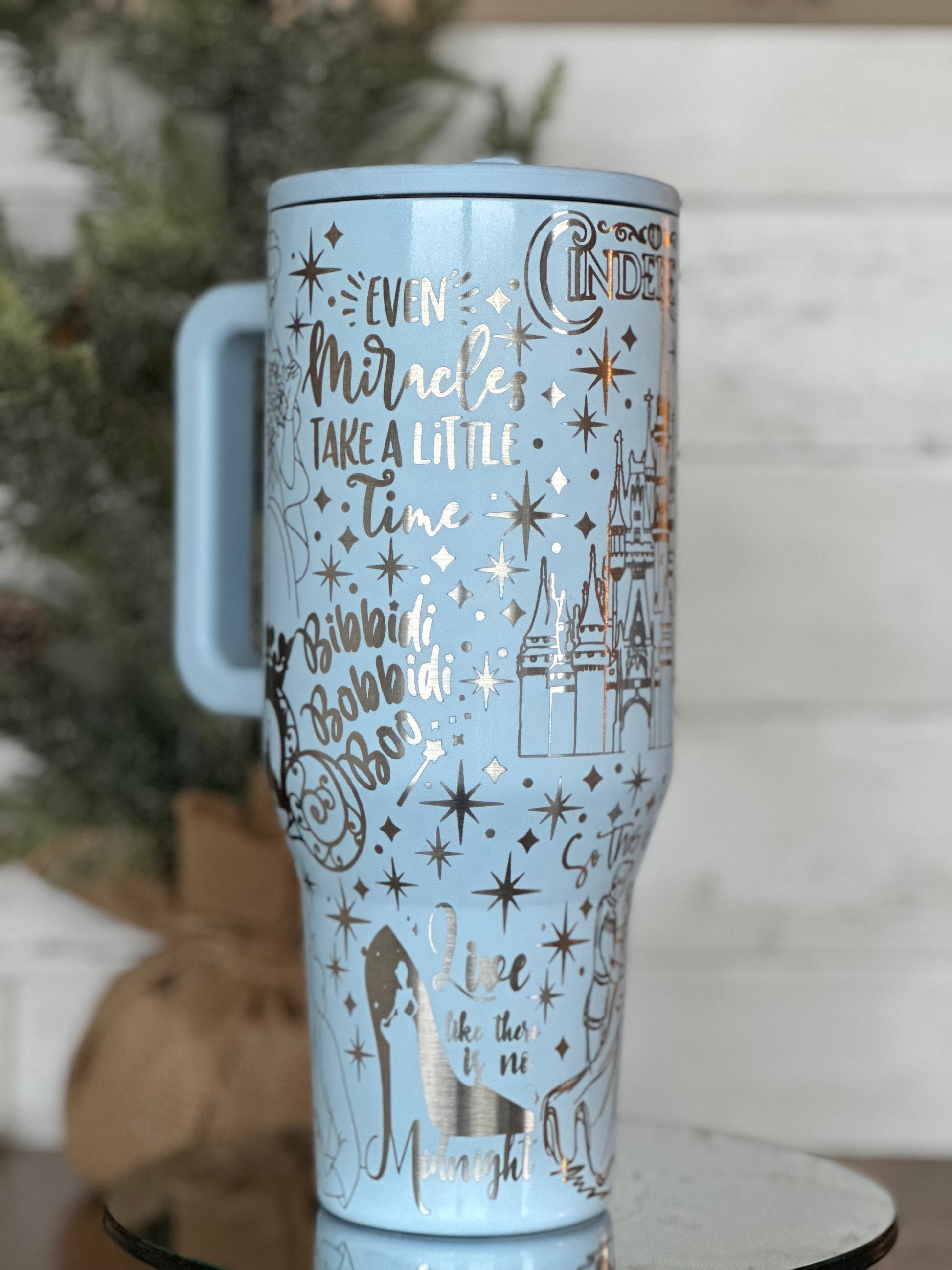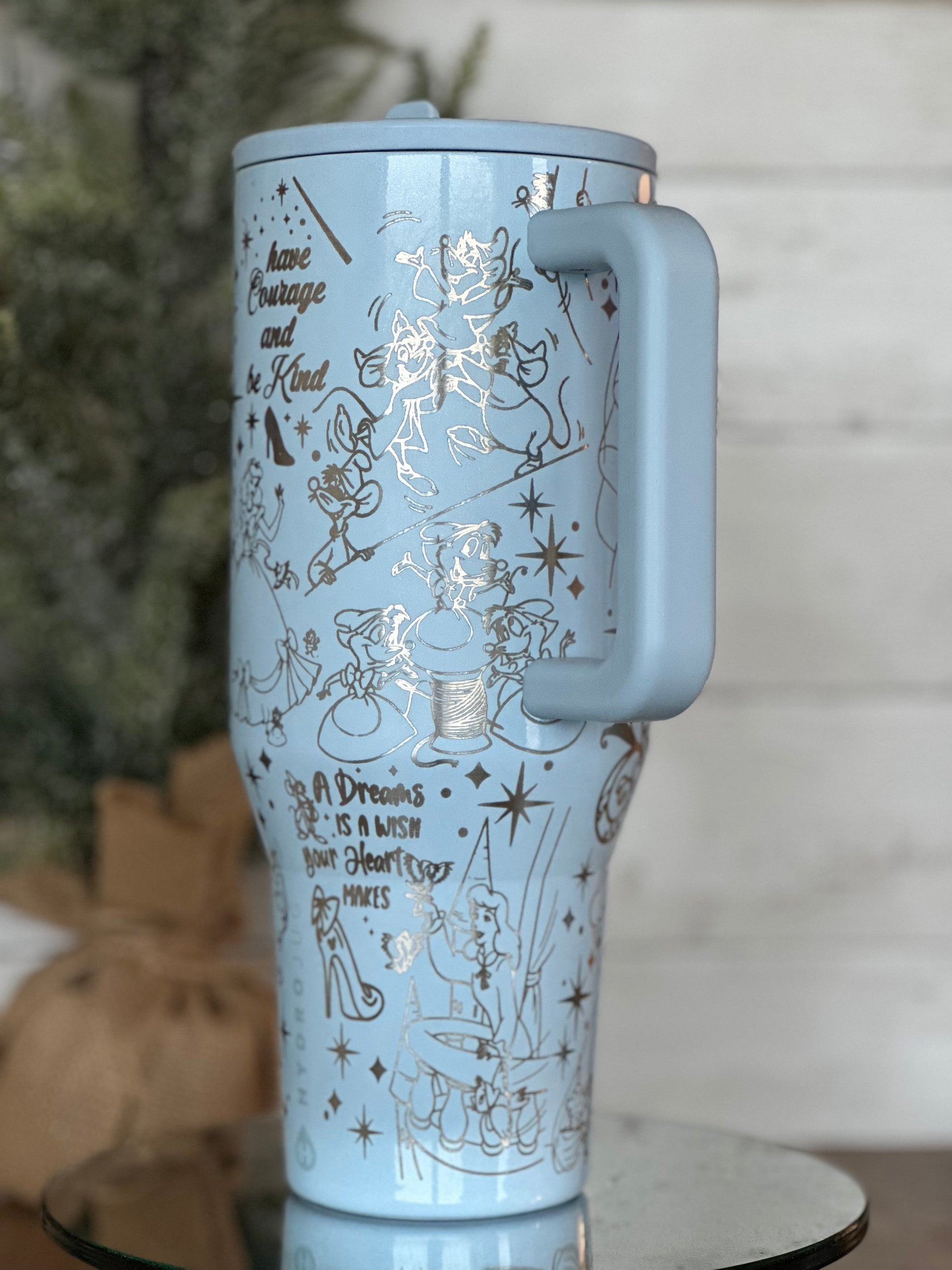 ⨠Cinderella Inspired Hydrojug | Fairy Tale Blue Tumbler with Handle | Magical Quote Stainless Steel Cup āØ