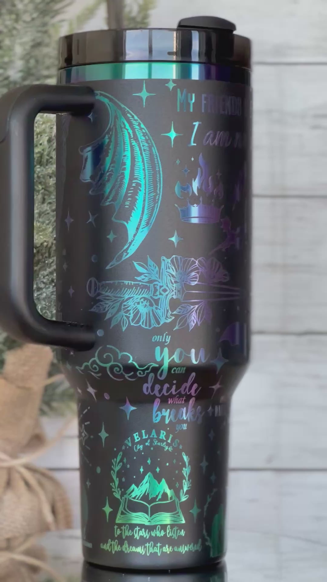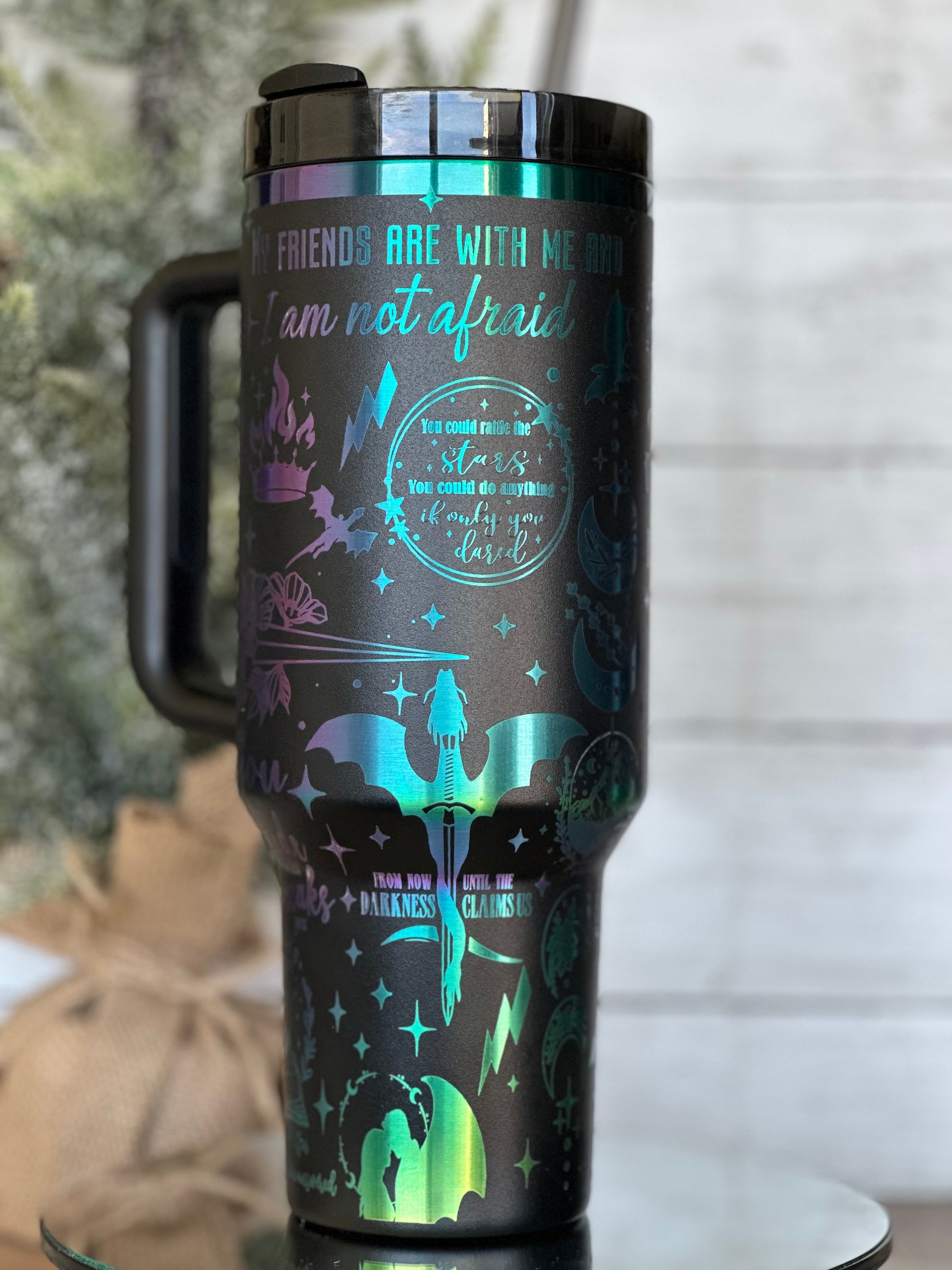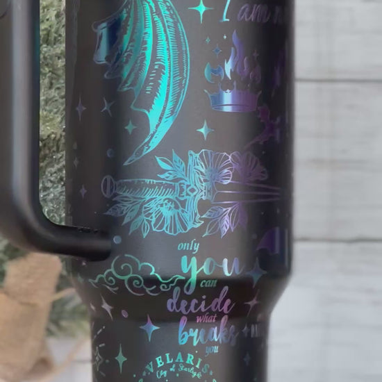 Bring magic, motivation, and style to your everyday hydration with this custom engraved Stanley 40oz Quencher Tumbler. Featuring iridescent fantasy-inspired artwork, empowering quotes, and celestial designs, this cup is perfect for fans of whimsical, bookish, and mystical aesthetics.
