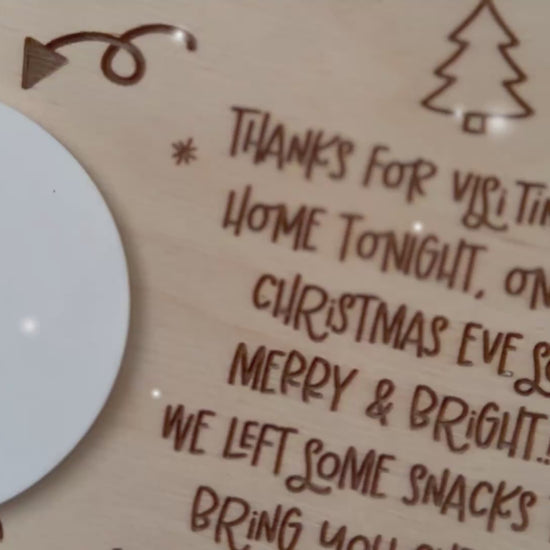 Make Christmas Eve extra magical with this personalized Santa milk and cookie tray — the perfect way for your kids to leave a special treat for Santa and his reindeer! Each tray is laser engraved on premium Baltic birch wood and features colorful acrylic accents that bring the holiday spirit to life.