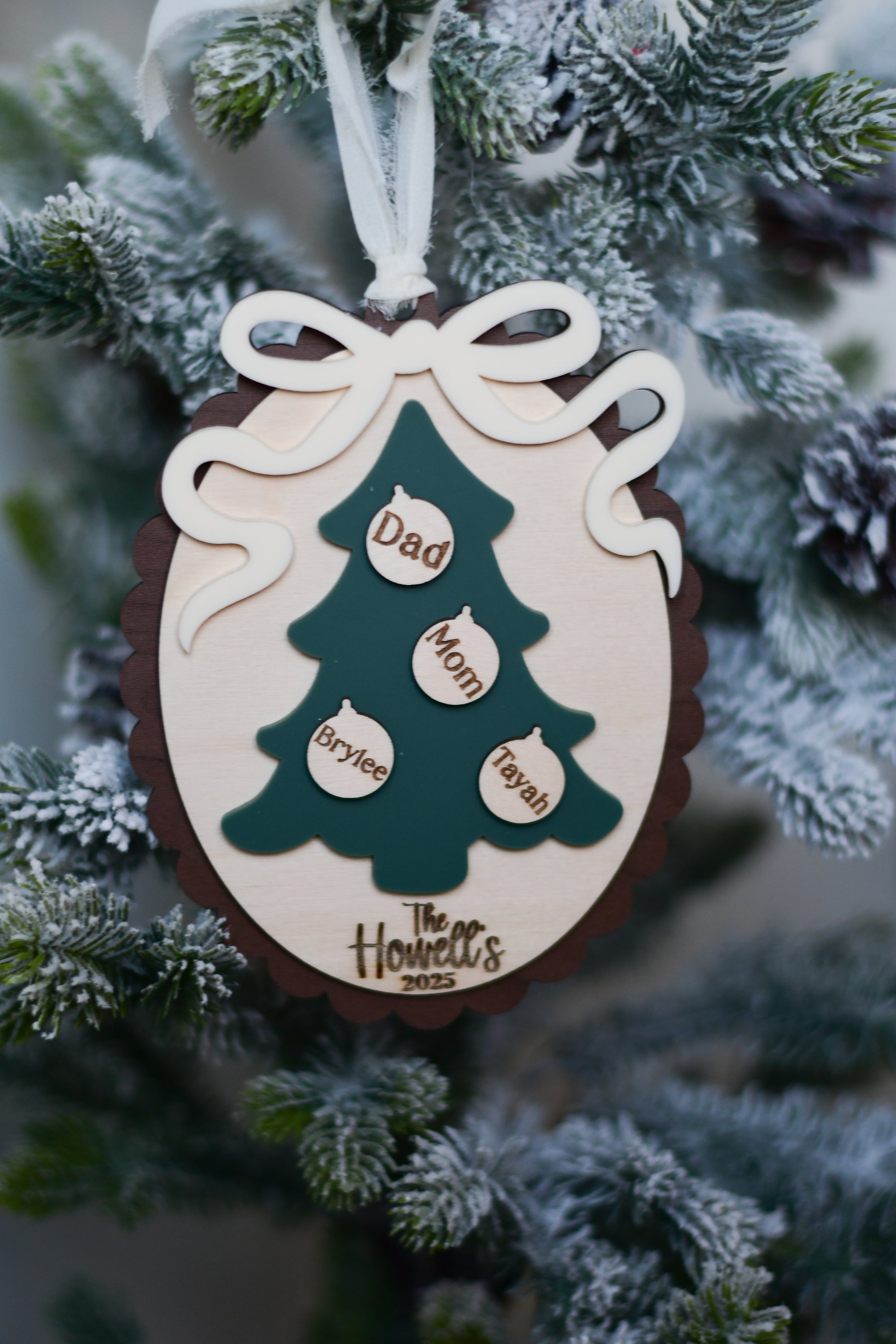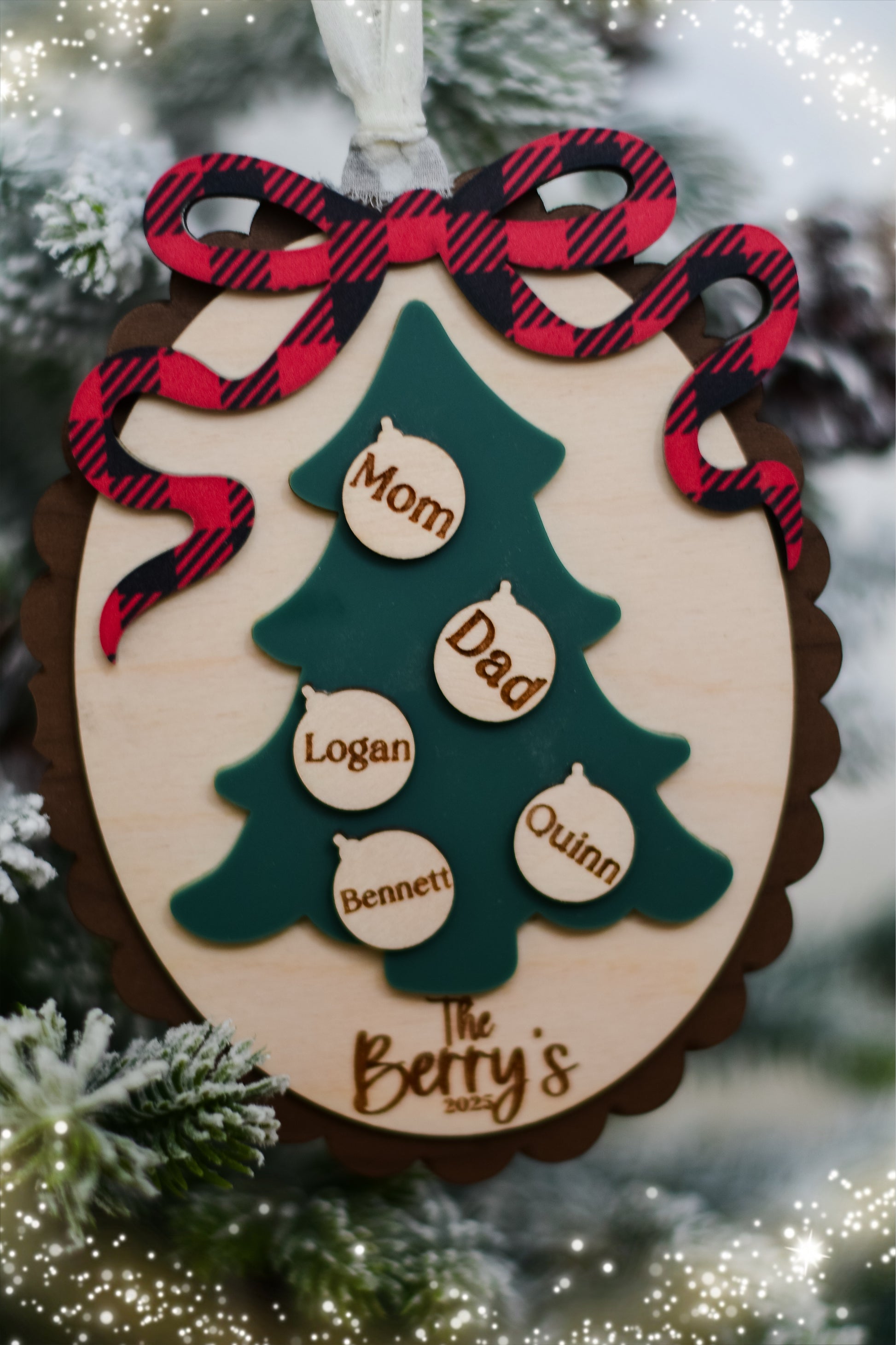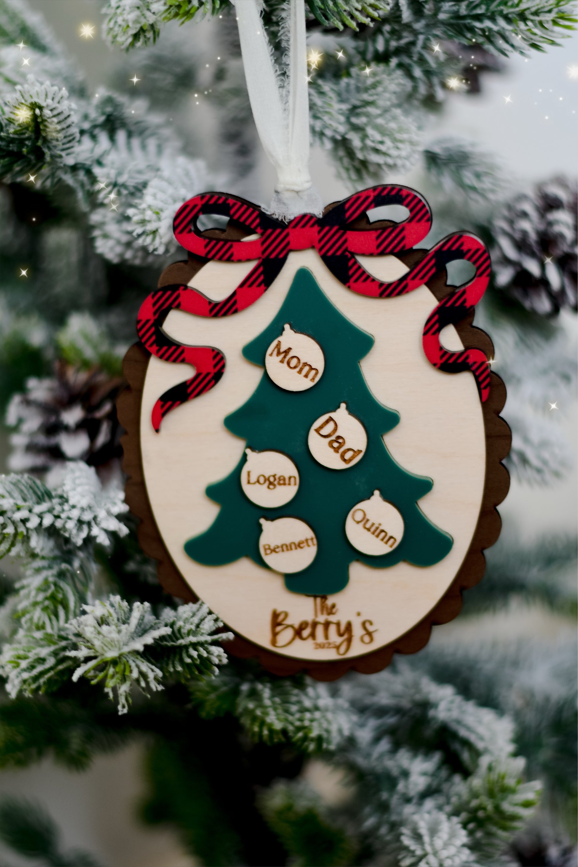 Each ornament is carefully laser cut and engraved for a lasting finish, ensuring it becomes a cherished piece of your family’s holiday traditions.