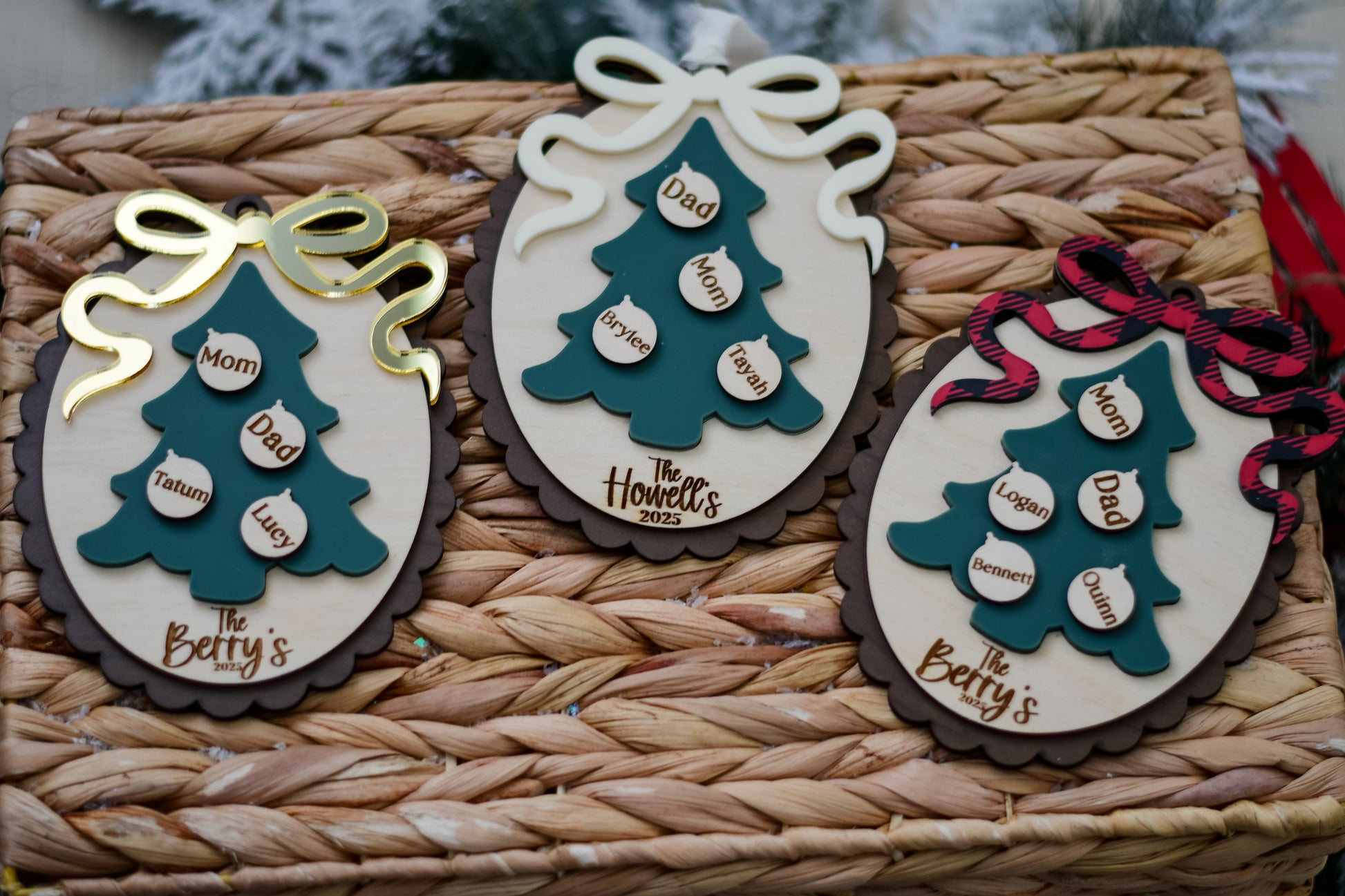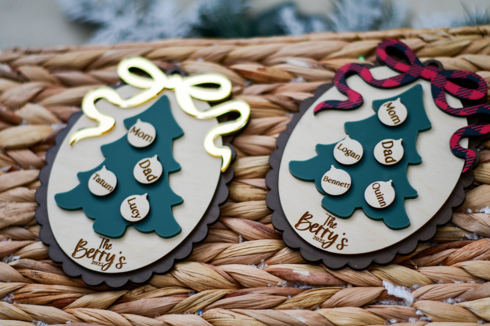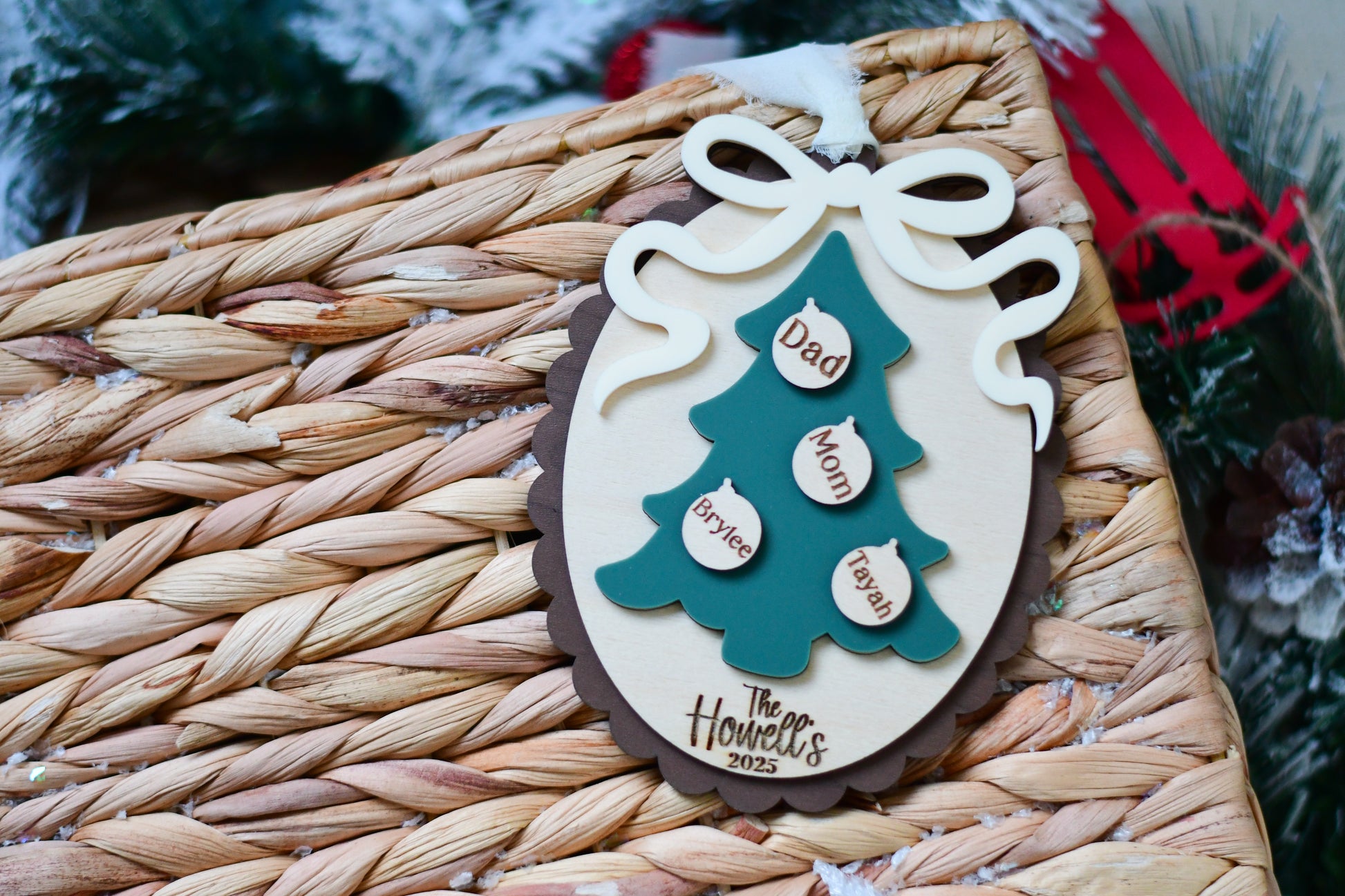 Each ornament is carefully laser cut and engraved for a lasting finish, ensuring it becomes a cherished piece of your family’s holiday traditions.