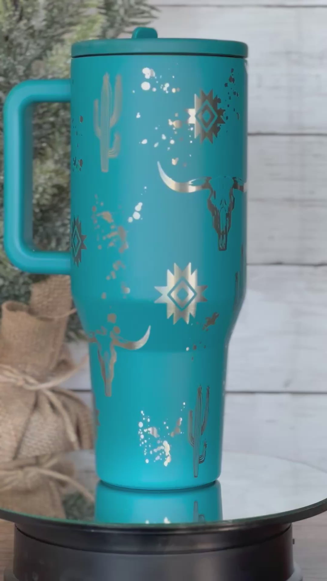 - Stunning turquoise finish with desert-themed designs (cactus, longhorn, tribal patterns)