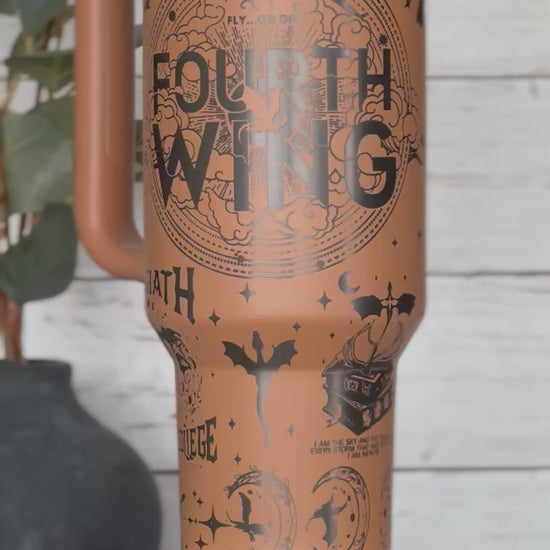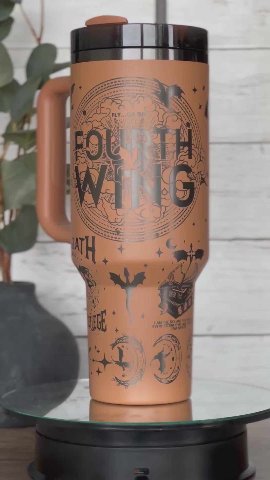 Step into Basgiath War College every time you take a sip! This stunning custom Stanley tumbler is inspired by the world of Fourth Wing and designed for readers who love dragons, rebellion, and bold fantasy aesthetics. Featuring a rich matte caramel finish and deep black engraved artwork, this cup is the perfect companion for book nights, long commutes, and everyday hydration.
